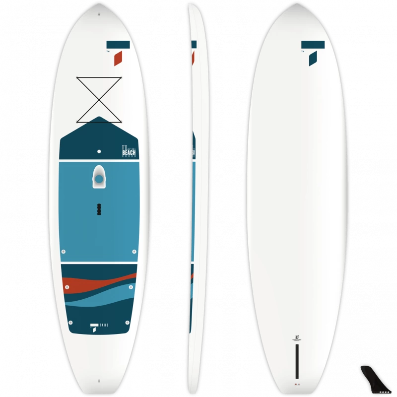 Ce SUP Tahe Beach Cross 11.0 est très stable et est destiné à l’initiation, au plaisir en famille, au fitness et à toutes les activités de SUP. La fabrication hybride de la Beach Cross 11’ contient plusieurs atouts : un nose étravé pour mieux naviguer lorsqu’il y a des clapots et guider la planche, son volume important apporte une stabilité accrue, sa surface large de pont ainsi que sa ligne de flottaison basse augmentent la qualité de la navigation. La La technique de fabrication TOUGH-TEC est conservé malgré le changement de marque. Une technologie qui offre une solidité et résistance aux paddles.